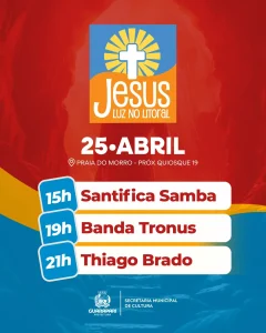 A juventude católica capixaba tem encontro marcado no dia 25 de abril, em Guarapari. O festival “Jesus, Luz no Litoral” promete transformar a Praia do Morro em um espaço de convivência, fé e alegria, com uma programação especialmente pensada para os jovens que buscam viver a espiritualidade de forma leve, dinâmica e comunitária.